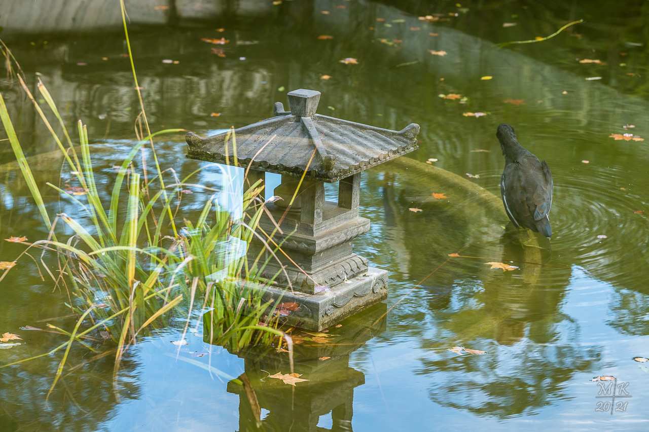 Der Chinesische Garten im Bethmannpark erhielt den Namen „Garten des himmlischen Friedens“ zum Gedenken an das Massaker auf dem Tian’anmen-Platz. Tatsächlich bietet der gesondert eingehegte Bereich innerhalb des Parks ein Refugium mit einer ganz besonderen Atmosphäre. Die Gestalter:innen schöpften aus dem reichhaltigen Reservoir an Elementen der chinesischen Gartenkunst: es fehlen weder Wasserfall, Pavillon mit Pagodendach oder Kois, noch Bambusdickichte, offene Wasserflächen oder Sitzgelegenheiten für meditative bzw. kommunikative Aufenthalte.